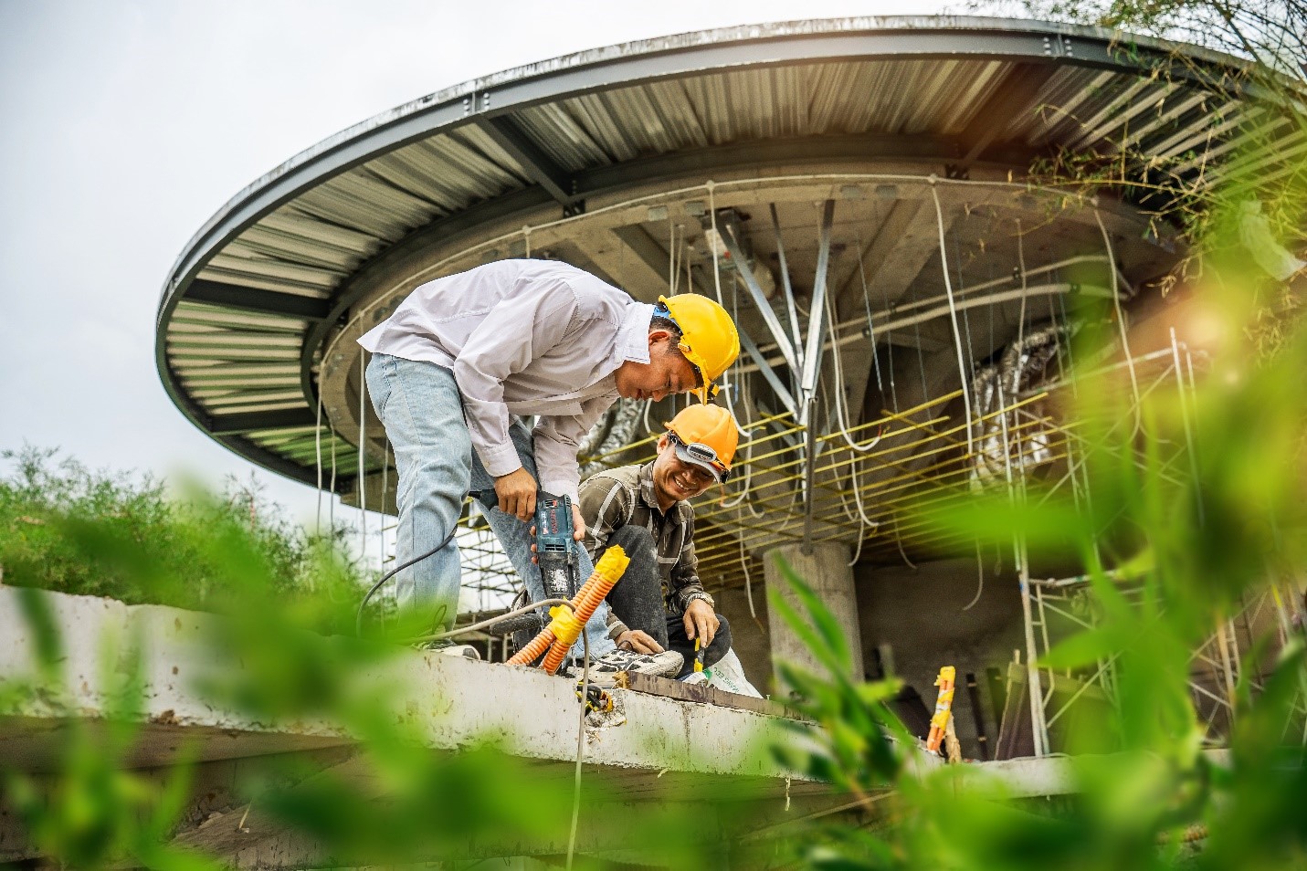Công trường Eco Retreat hối hả làm việc với 3 ca 4 kíp - Ảnh: Phong Anh