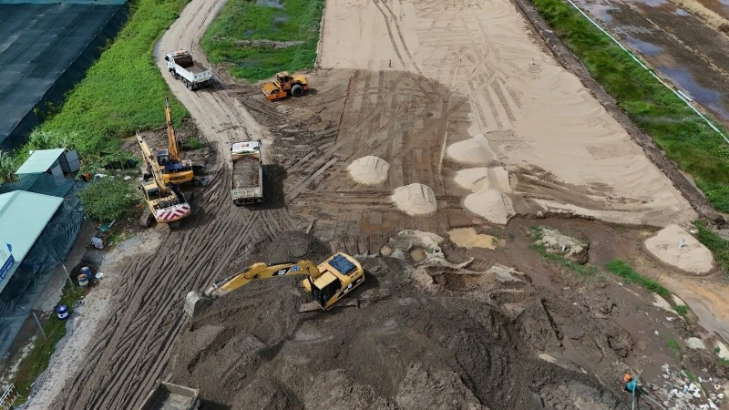 Gói thầu Xây lắp 8 thuộc dự án vành đai 3 Thành phố Hồ Chí Minh, đoạn qua địa bàn huyện Hóc Môn, thuộc phía tây thành phố, đang cần số lượng lớn cát đắp nền. (Ảnh THẾ ANH)